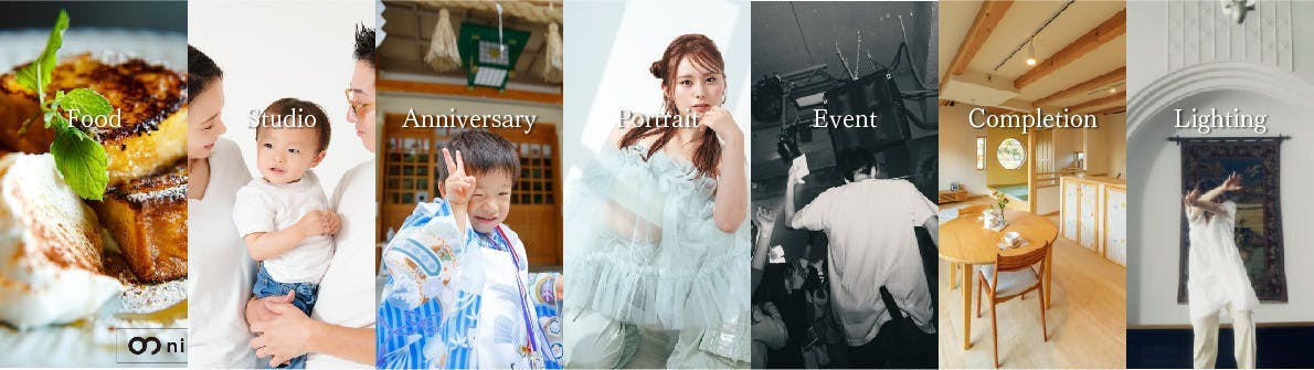 記念撮影、モデル撮影、物撮り、建築、イベントなど撮影ジャンルを問わず、