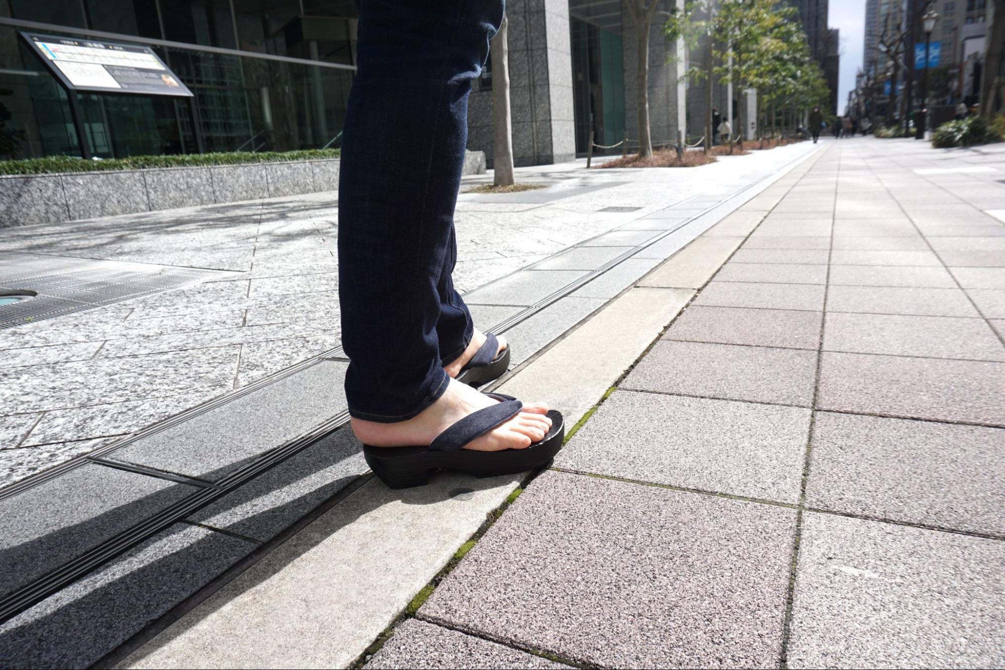 今回のプロジェクトでは、老舗和装メーカーアンドウ株式会社と共に開発した疲れにくい下駄を