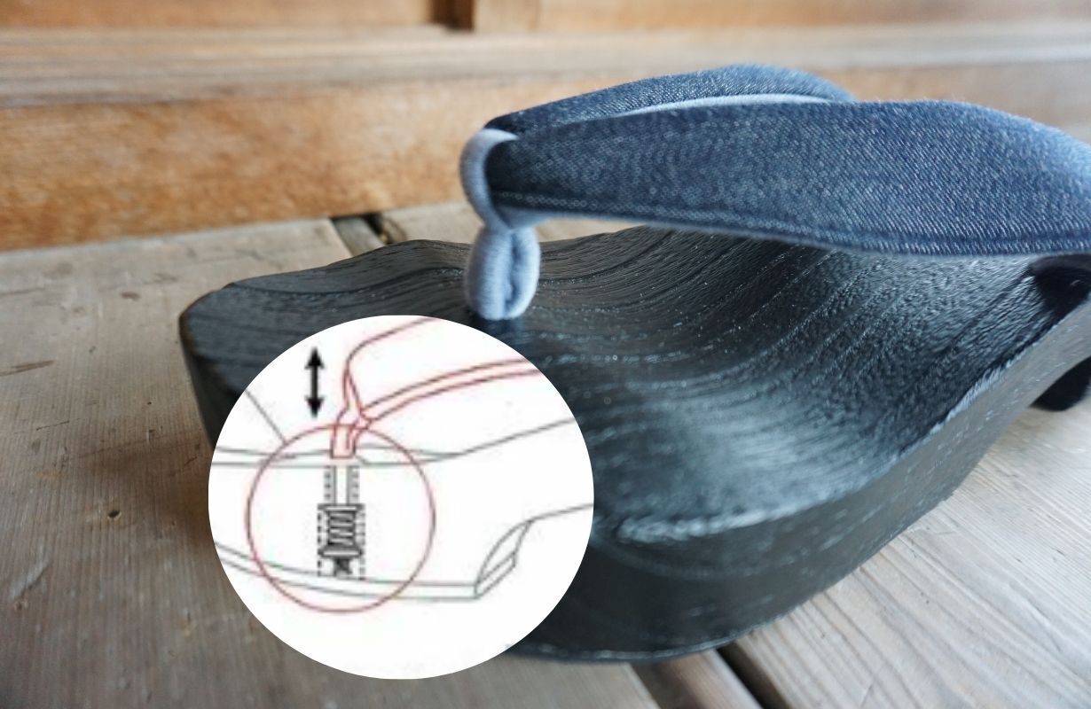 ※鼻緒の足指への負担軽減のため、中にスプリングコイルが入っております。ご使用前に少し優しく引いて、ならしてからご使用いただけると快適に履いていただけます。その際、強く引っ張らないでください。