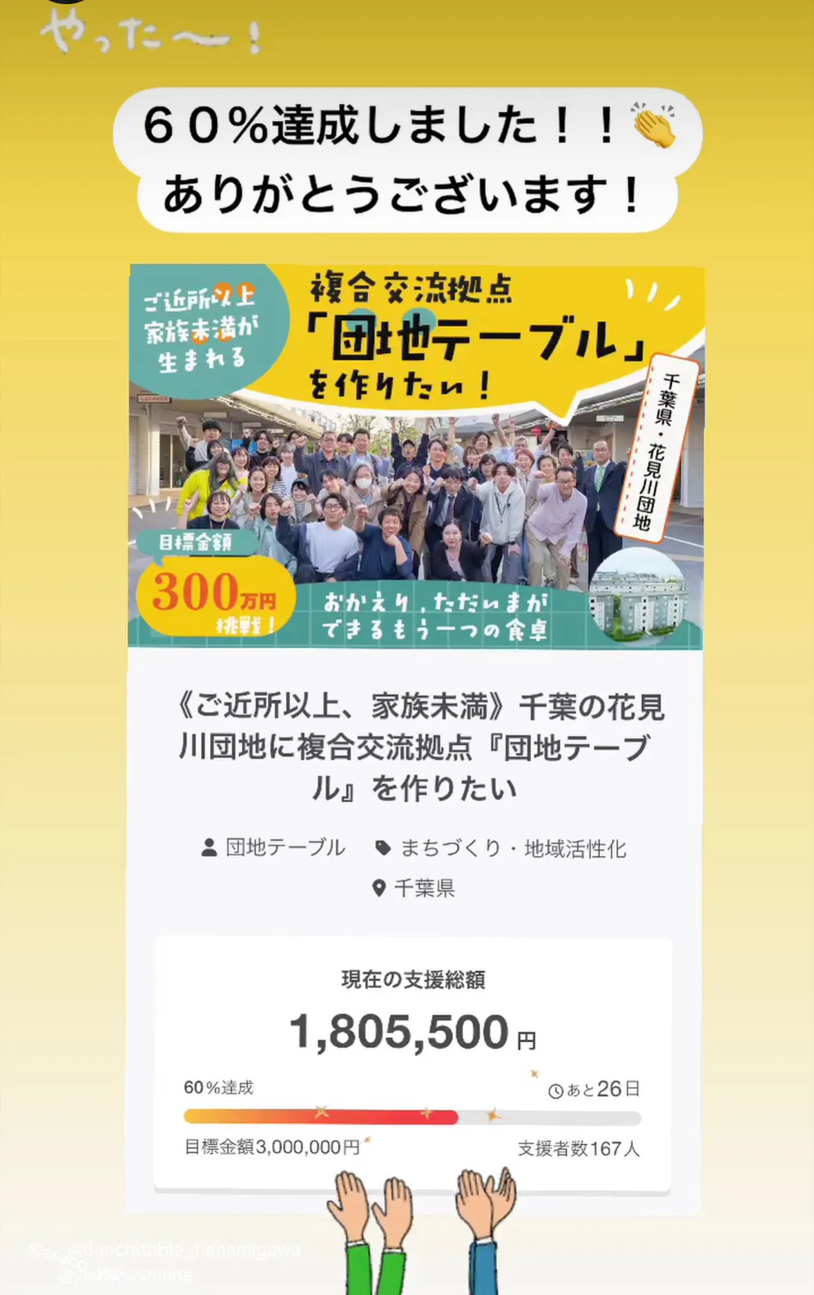 シェア団地の暮らしの実現に、これだけたくさん共感してくれていること、ご期待をいただいていること、めっちゃ嬉しいです!!励みになります!