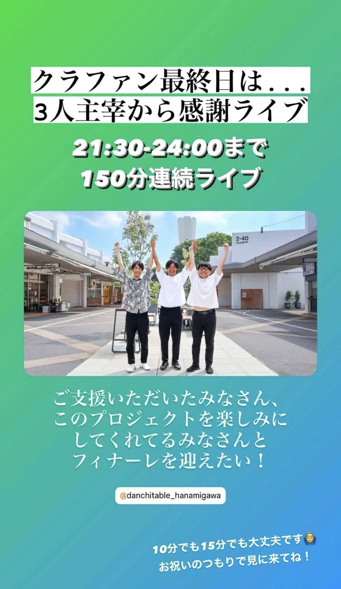 みなさまいかがお過ごしでしょうか^_^団地テーブルはおかげさまで、順調に工事を進めておりますっ(素材や設備選びがたいへん〜〜)さて、みなさま待望の団地テーブルが11月9日土曜日にプレオープンいたします!さらに!完成を祝賀して、実際に花見川団地に集まってみんなでシェア団地の未来を乾杯しよう!!!という趣旨のリアルイベントを開催します⭐︎しかもこの日は花見川団地商店街振興組合の主催による【100円商店街】も同時開催中なので賑やか雰囲気で、花見川に初めていらっしゃる方は一日中楽しめる日となっています^_^ぜひご予定をご調整の上、ご参加お待ちしております☆ピーテックスのページ⇩https://peatix.com/event/4161362◎こんなヒトに来て欲しい・シェア団地プロジェクト/団地テーブルに興味がある方・団地の暮らしに興味がある方・シェアハウスの暮らしに興味がある方・地域コミュニティについて興味がある方・団地テーブルでやってみたいことやアイデアを持っている方・これからの団地に興味がある方・花見川団地、八千代台周辺に在住の方◎イベント概要【日時】2024年11月9日(土)18:00~20:00【開催場所】千葉県千葉市花見川区花見川2-42-105【参加費】2,000円 軽食と乾杯の飲料がつきます。【申込方法】peatixのイベントページよりお申し込みください。参加費は現地でお支払いください。【主催】シェア団地プロジェクト◎スケジュール1.挨拶&乾杯2.ご歓談3.参加者自己紹介4.ご歓談5.今後のことについて6.記念撮影 終了