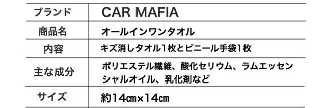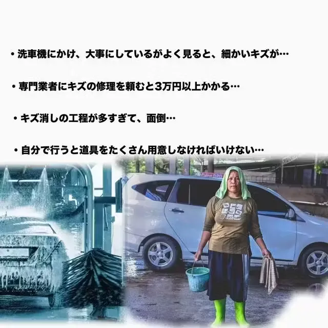 A:キズ消しタオルは日常生活の中で、一般的な車の使用で発生する細かいキズや洗車のキズ、摩擦のキズ、汚れ、鳥の糞、酸化物等に優れた効果を発揮します。損傷がひどい場合は、専門業者にご相談下さい。