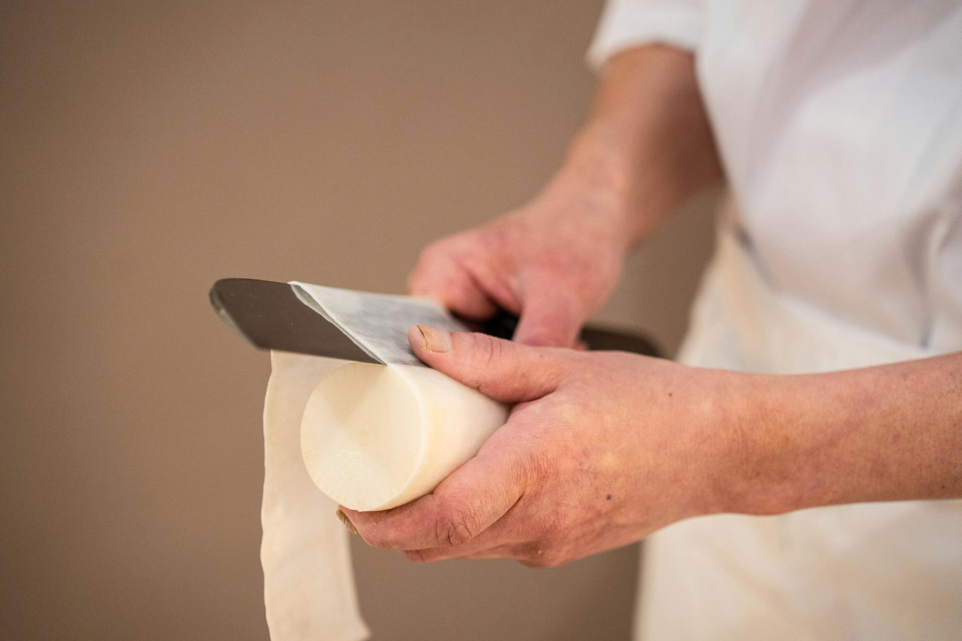 包丁技法の一種で円柱状の大根などを巻き紙をほどく様に薄く長く剥く事をいいます。