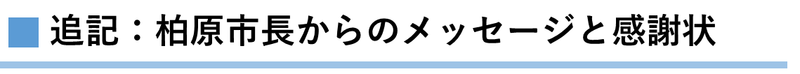 柏原市長 冨宅正浩さまから応援メッセージと感謝状を頂きました。柏原市の桜を守るため、尽力して参りますので、皆様からのより一層のご支援お待ちしております。よろしくお願いします。