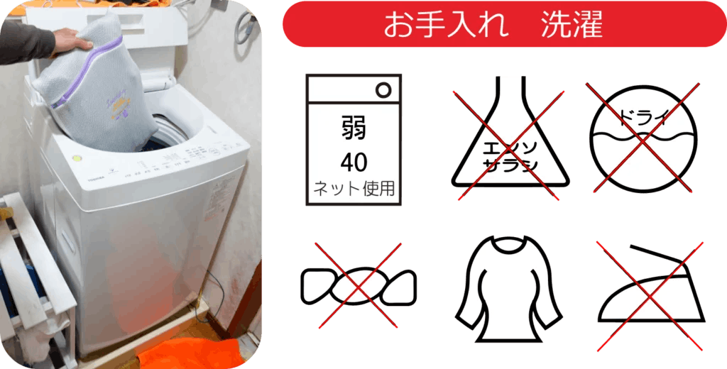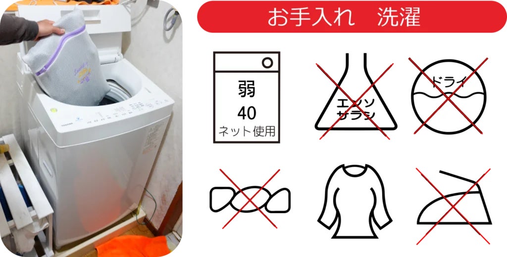 A)洗濯機で丸洗いが可能です。(要洗濯ネット)