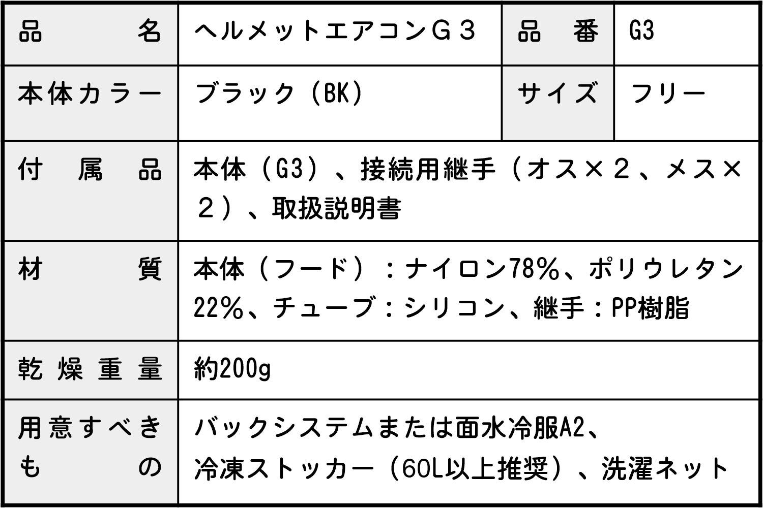 ヘルメットエアコンG3単品です。単体では使用できません。