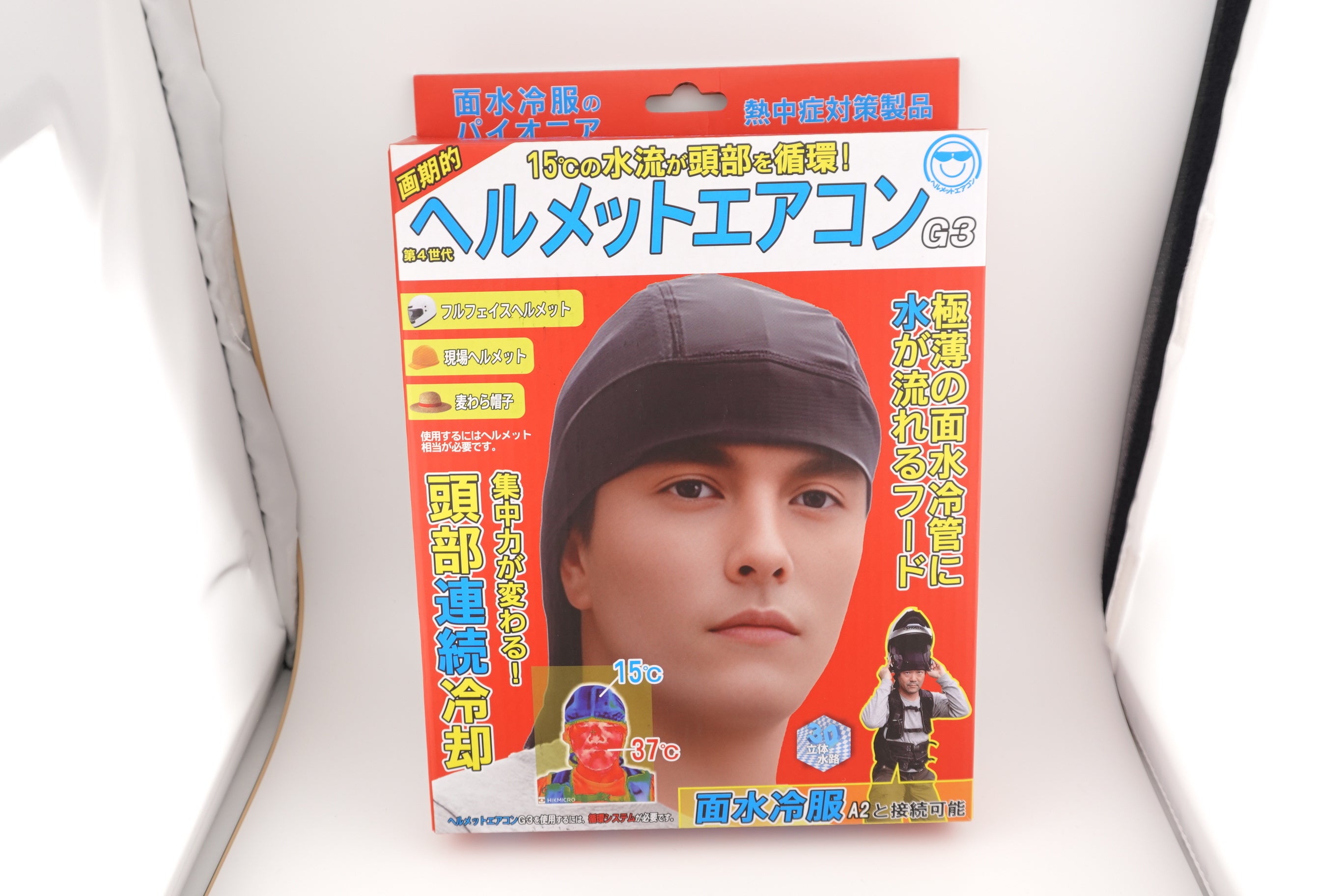 こんばんは!ヘルメットエアコンのパッケージができました。現在、性能テストなどを行っており、最終生産調整を行っています。これまでで最も安定したヘルメットエアコンと思います。生産設備が良いため、安定性が高いといえます。細かい微調整を必要としましたが、今のところ致命的なトラブルはございません。A2と接続して実験も繰り返しております。一部、説明書の印刷と異なる内容がありますが、補足説明書を追加することで対応しています。ヘルメットをかぶった状態では、G2には及ばないものの、必要十分な冷却安定は、とても優れた製品だと思います。現時点では世界で最も優れた頭部連続冷却装置だといえます。ご利用まで、お楽しみに!