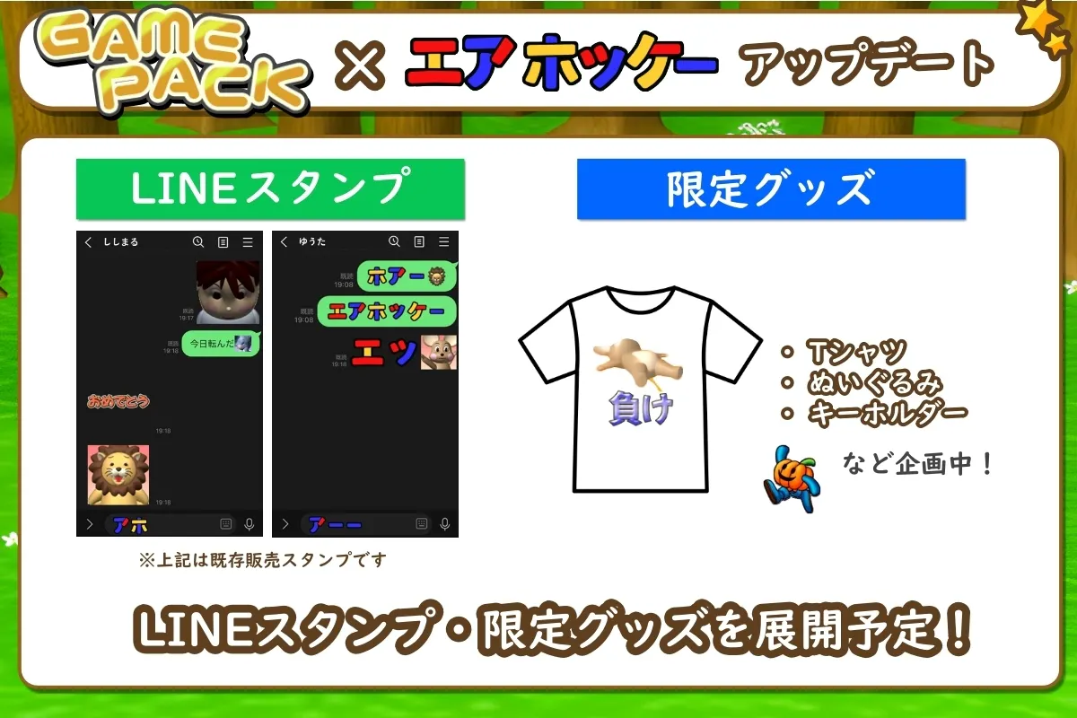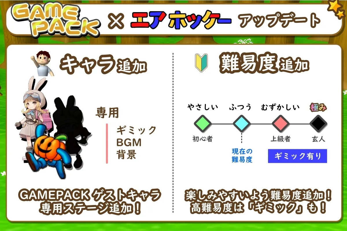 最初のアップデートとして「GAMEPACK」×「エアホッケー」のコラボアップデートを企画しており、その後は他コンテンツとのコラボ関連のイベント・アップデートを予定しております。