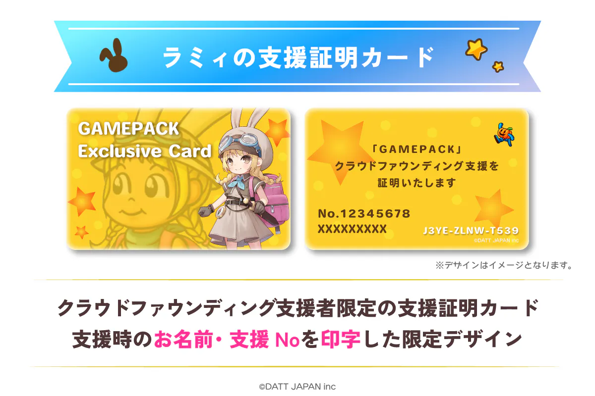 しかし、これで終わりではありません。今回のクラウドファンディングをきっかけとして、各GAMEPACKタイトルの新規開発やアップデート、対応プラットフォーム拡充、次の世代に向けてのグッズ、クロスメディア展開などを実現していきたいと考えています。そのためには皆様の支援が必要です。可能な範囲でクラウドファンディングへのご協力をお願いできれば幸いです。