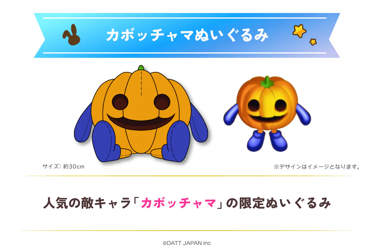 「ラミィの大冒険」シリーズに登場する「カボッチャマ」のオリジナルぬいぐるみを提供します。