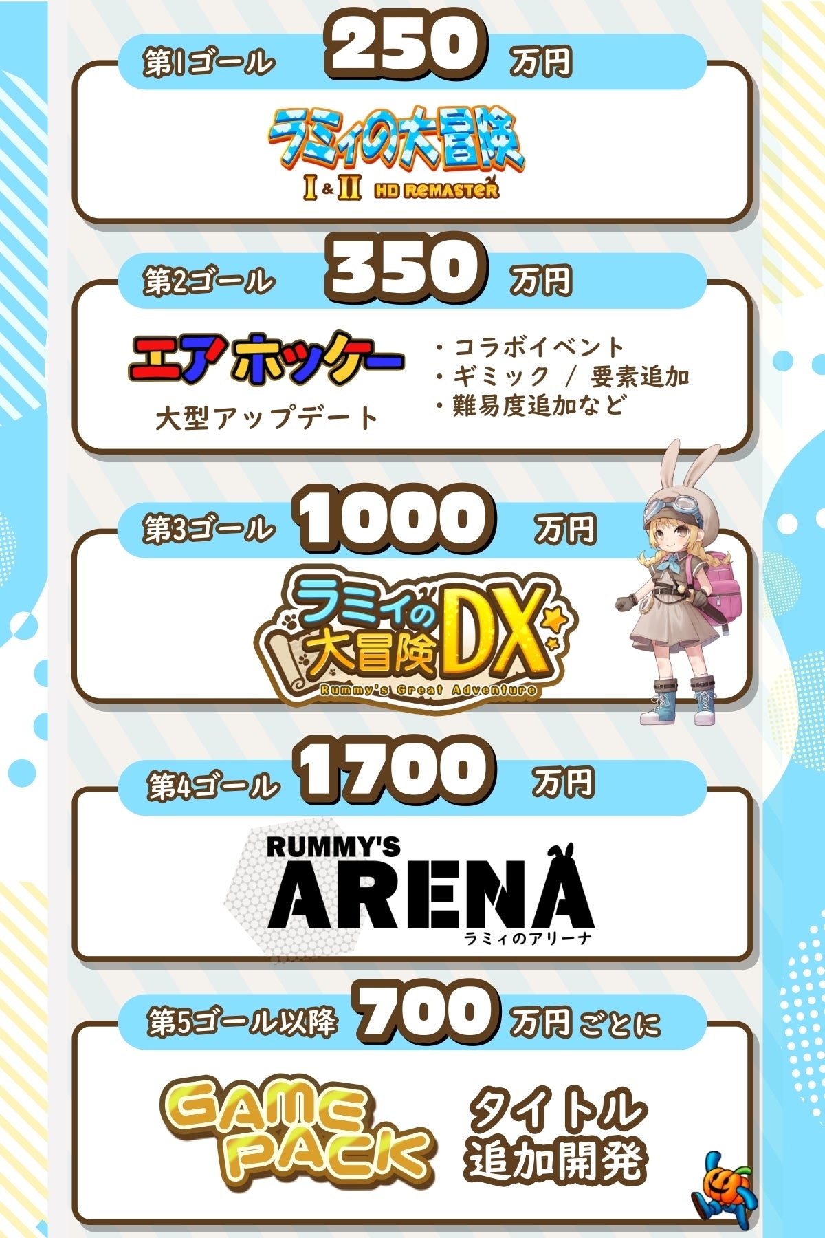 該当ゴールに到達した場合「アリーナ」をリメイクした「ラミィのアリーナ」を新作として開発します。