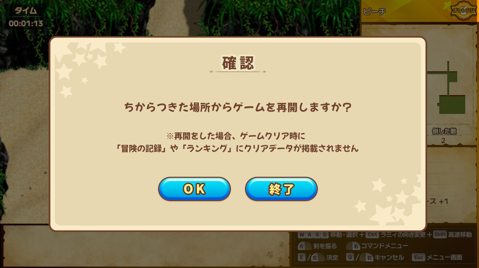 ■【新機能】再開機能(コンティニュー機能)