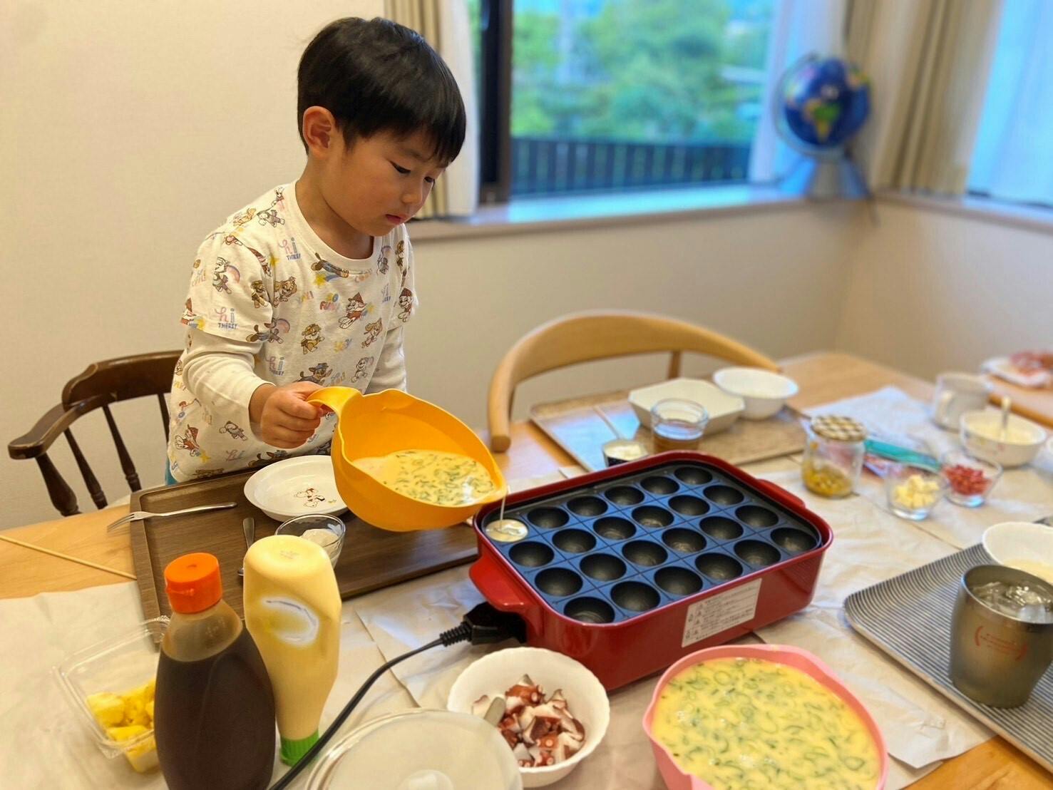 たこ焼きを作る際には、注ぎ口が平たくなっているので液だれしません