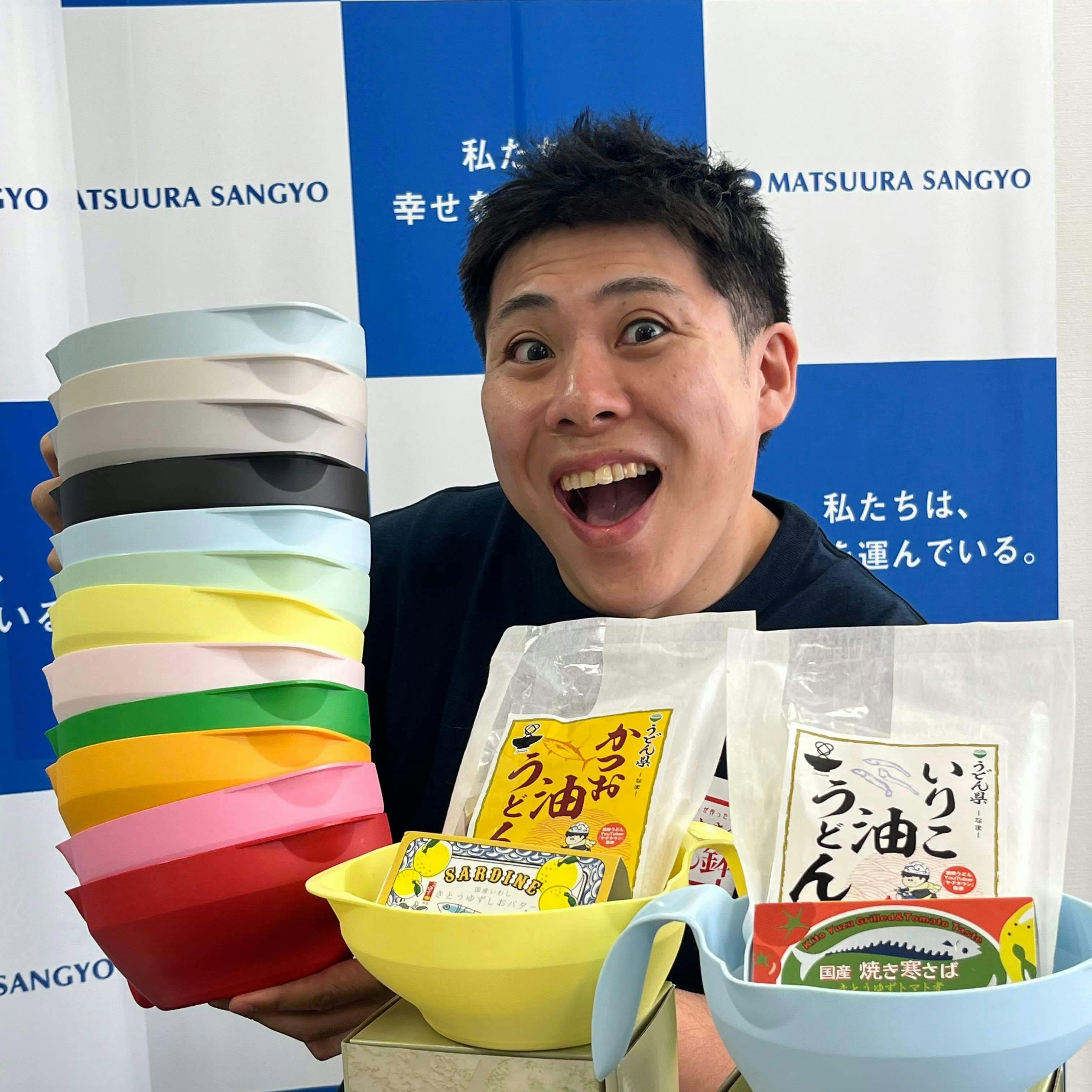 地元さぬきうどんユーチューバー「ヤグタウン」さんとのコラボ企画で、ヤグタウンさん監修の「いりこあぶらうどん+きとうゆずトマト煮缶詰」、「かつお油うどん+きとうゆずしおバター缶詰」と「とって」おきのうどん鉢 を追加致します