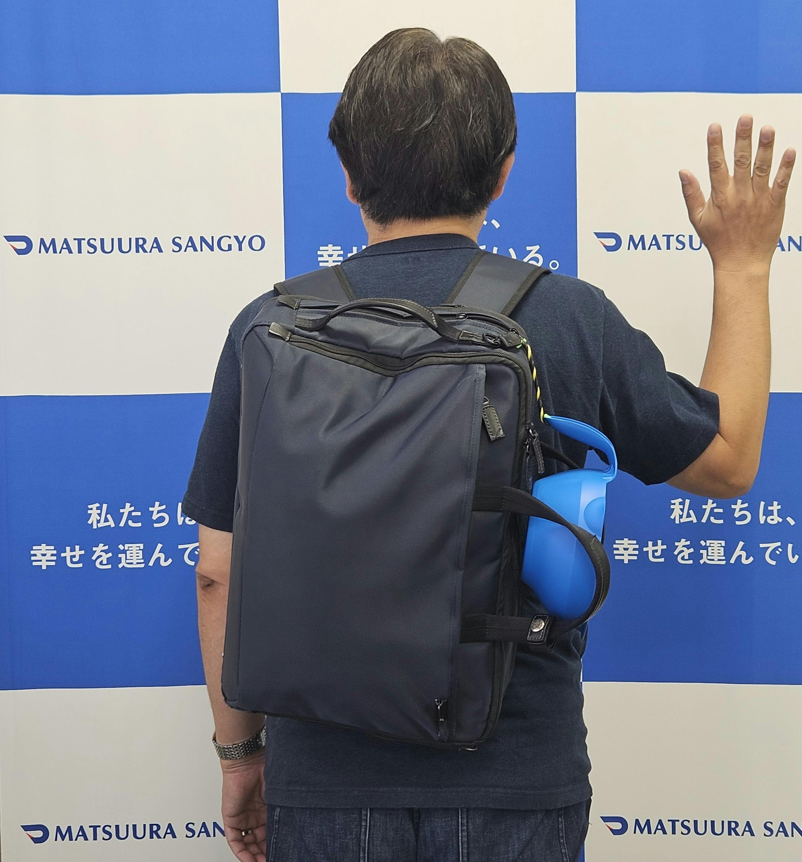 カバンにくっつけて、うどん鉢(瀬戸内ブルー)と旅に出ます また旅先で活動報告いたします