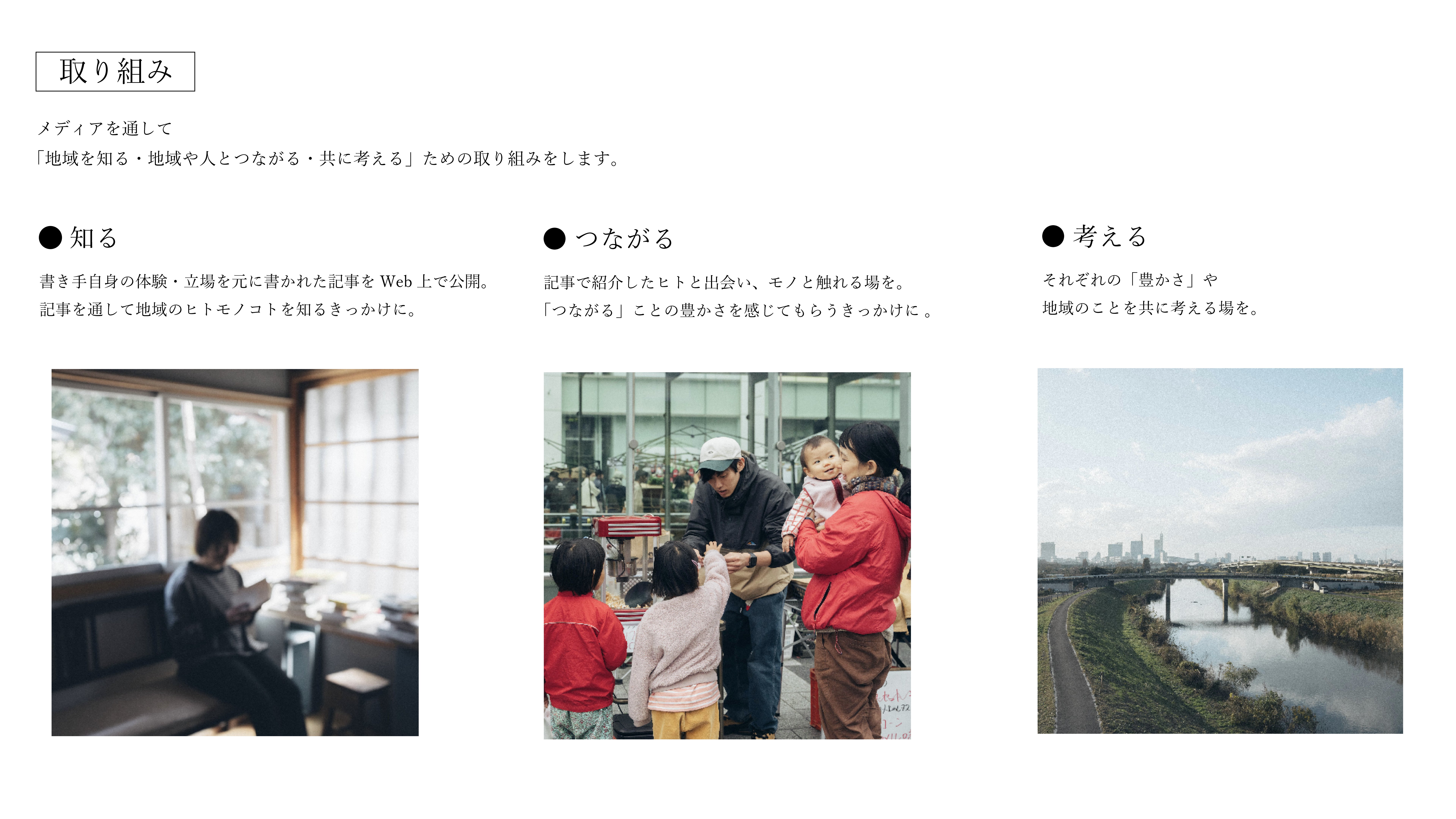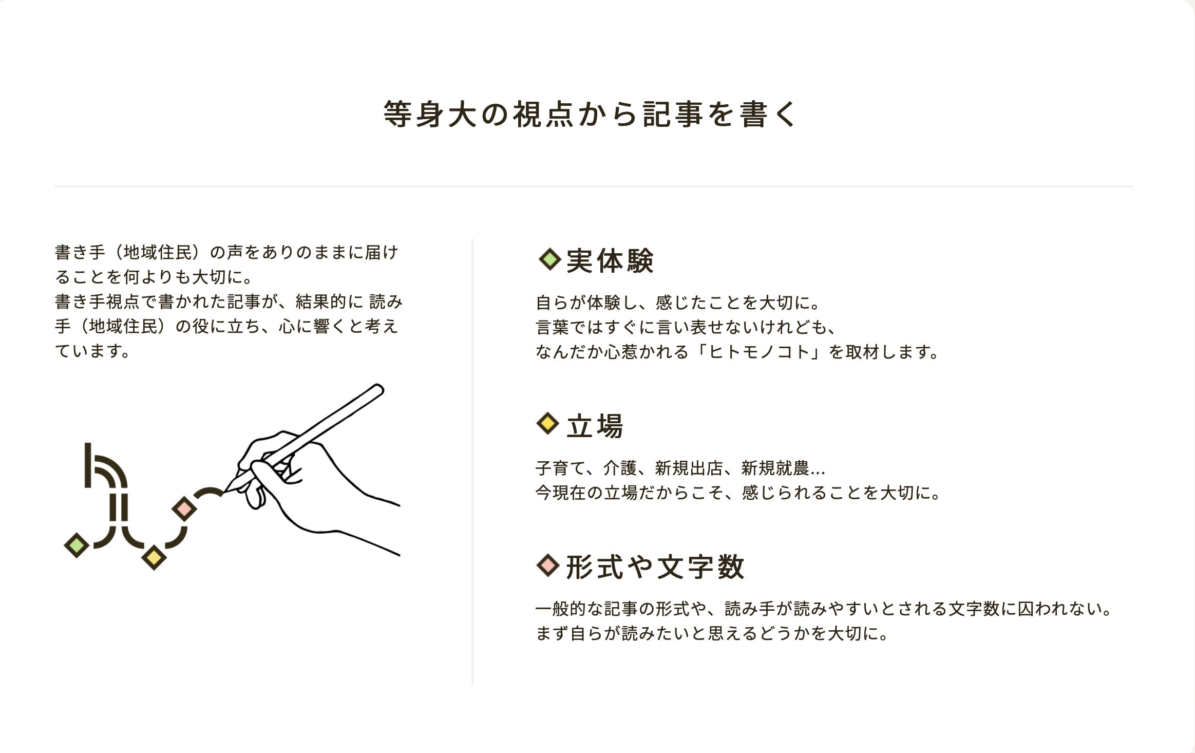 記事を通じてありのままの地域の「ヒトコトモノ」を知るきっかけになることを目指します。