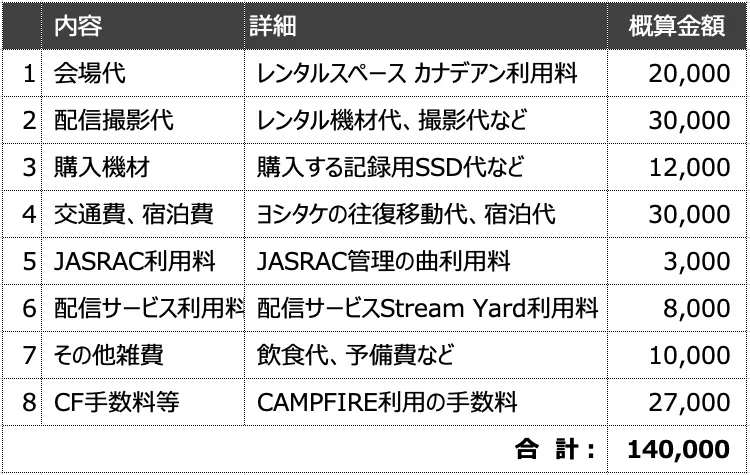 ▍アコースティックパーティ2024夏 開催のための必要資金と内訳
