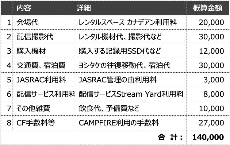 ▍アコースティックパーティ2024夏 開催のための必要資金と内訳