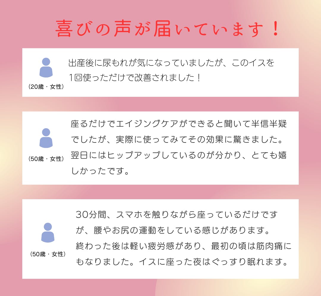 この魔法のイスにただ座るだけで、骨盤底筋をしっかりと鍛えることができます。
