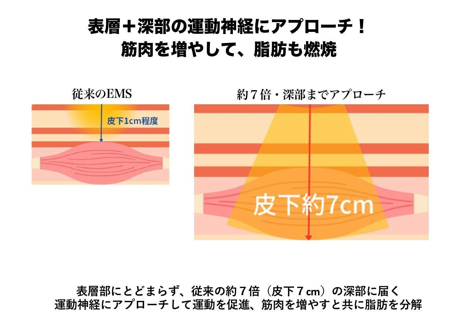 表皮から約10cmの筋肉に働きかけるため、筋肉のみに負担をかけ、内臓には負担をかけません。
