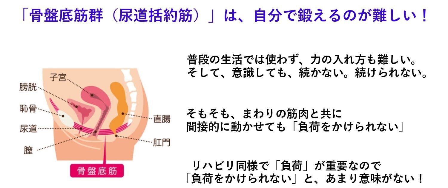 「骨盤底筋群トレーニングマシン」は、特に骨盤底筋(恥骨尾骨筋)を強化し、自分では鍛えにくい部分にもアプローチします。