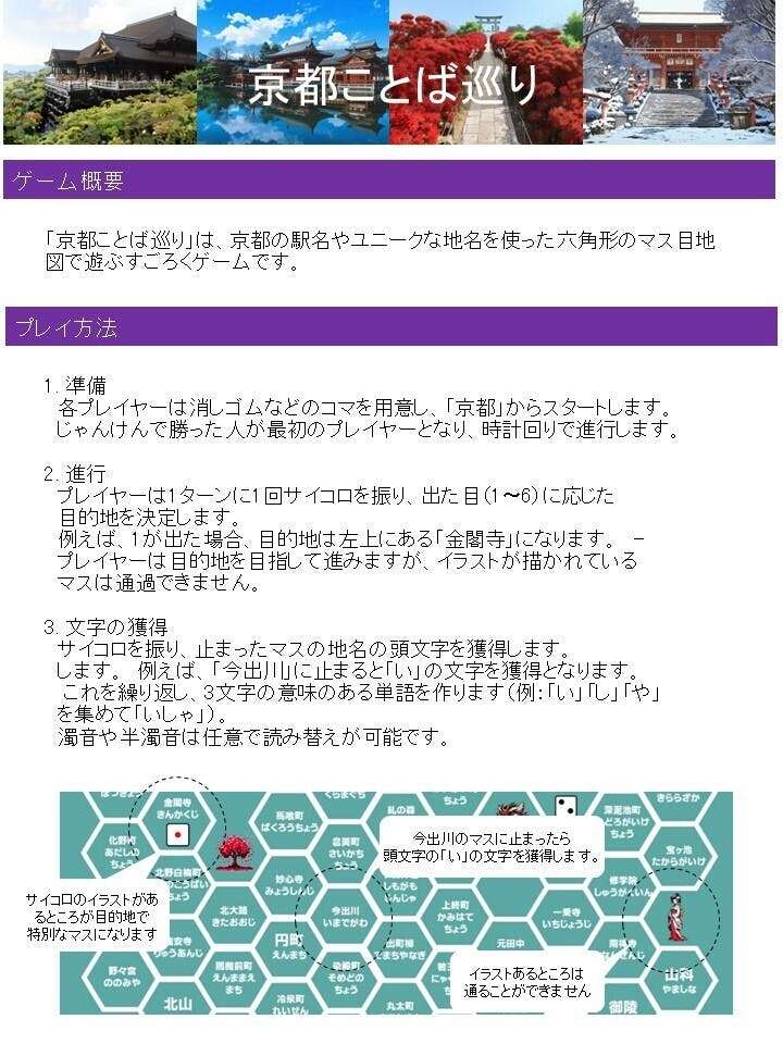 京都を舞台にしたボードゲームを作成しました。ぜひ、私たちと共に素晴らしいゲームを作り上げましょう。