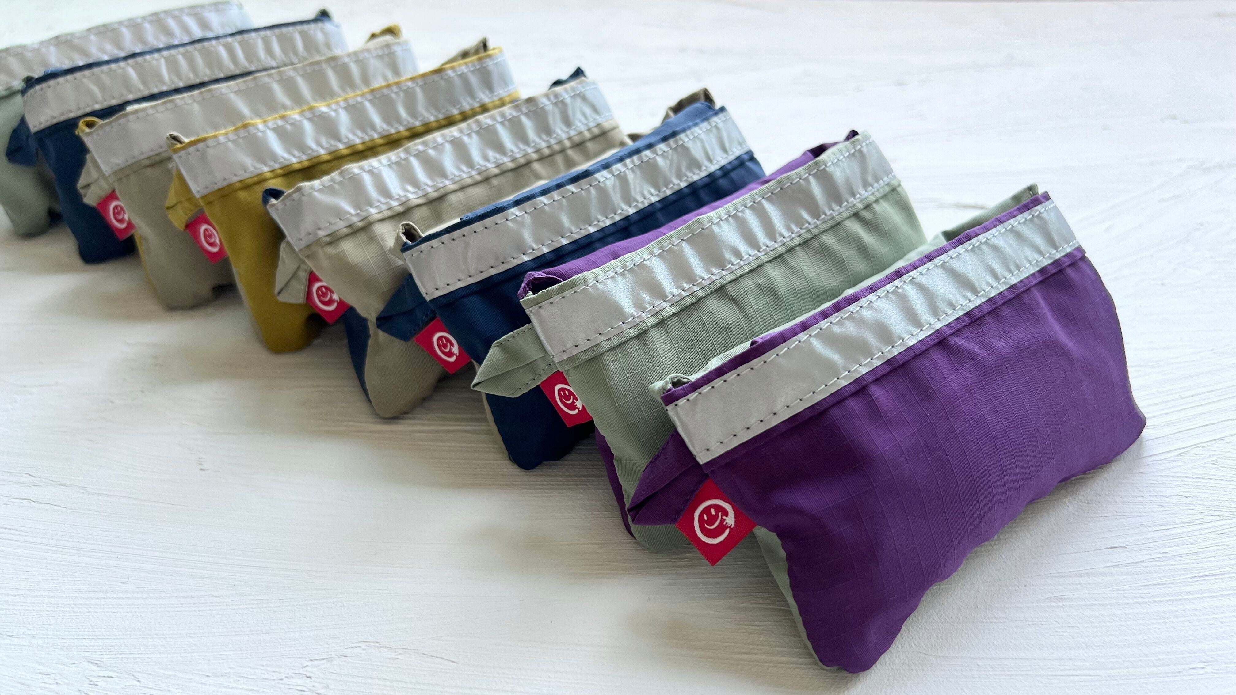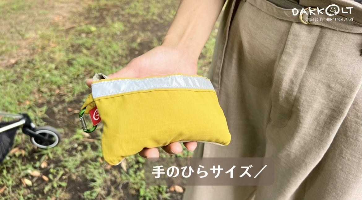 カラフルな生地や蛍光テープでアウトドアや夜間の視認性がよくバッグの中でも目立つので取り出しやすい。