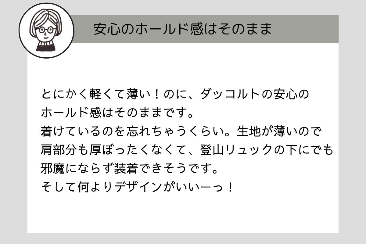 ・現行のダッコルト160gの半分!わずか80gとさらに軽量化。よりコンパクトで収納しやすくなります。