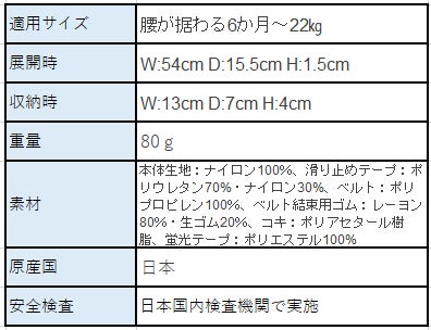 展開時にパッと開く工夫がされ(特許出願中)、装着時もスムーズに抱っこできる。