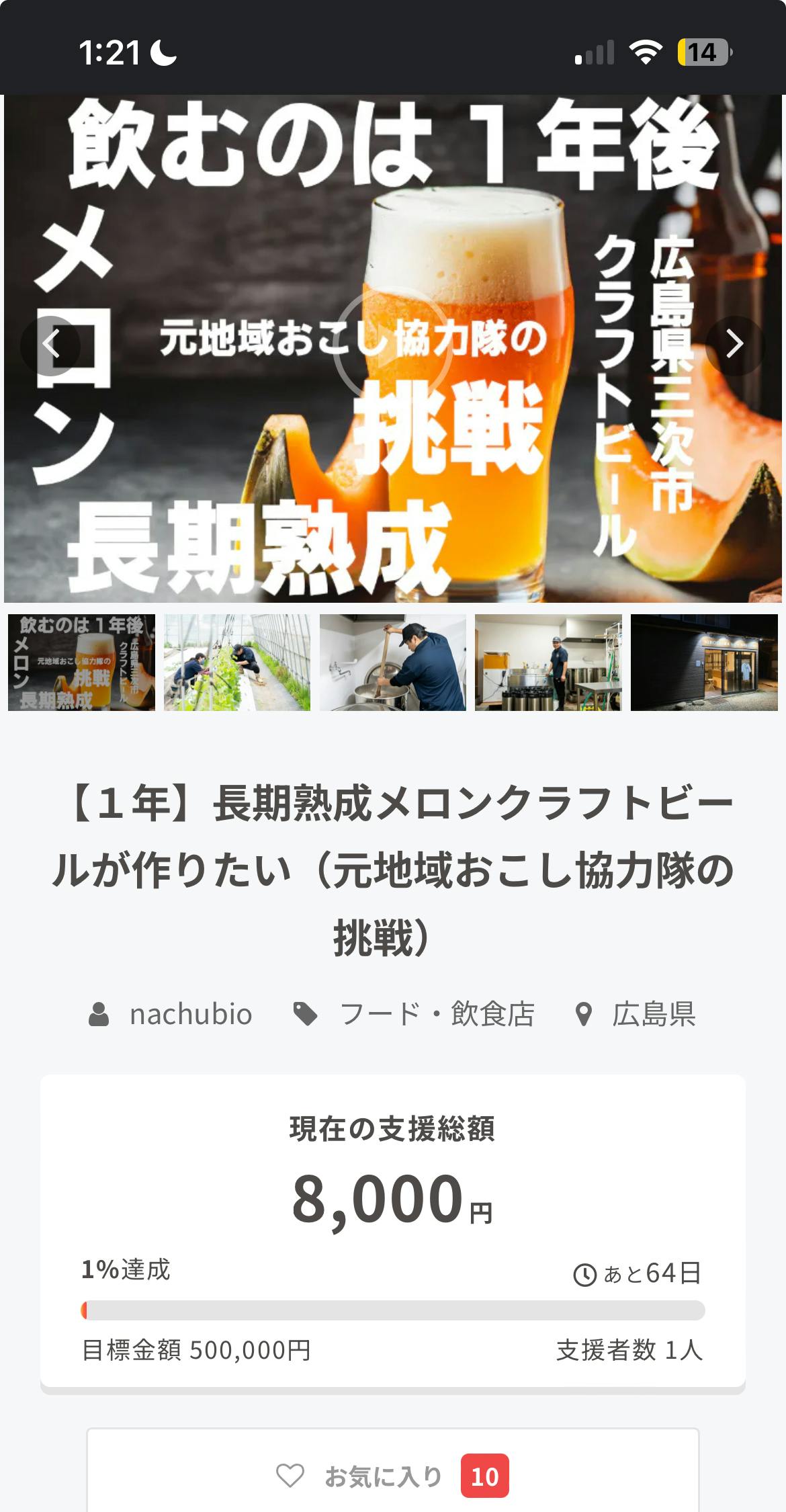2024/07/28 01:26こんにちは!HIROSHIMA NOH BREWERYの岡田アントニールイスです。公開後すぐにご支援をちょうだいしております。ありがとうございます!このたびのご支援先にもあります長期熟成メロンクラフトビールは数量に限りがございます。ぜひ早めにチェックしてみてぐたさい!みなさまから暖かいご支援をお待ちしております! もっと見る
