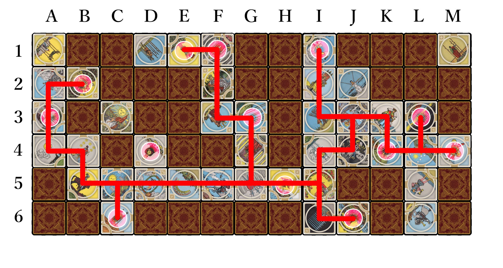 札の上下によって解釈を変えるタロットと、道を繋げる為に札を回すルールは相性が良かった。自身の意思とは無関係に目まぐるしく展開する夢の物語を思い起こさせる。