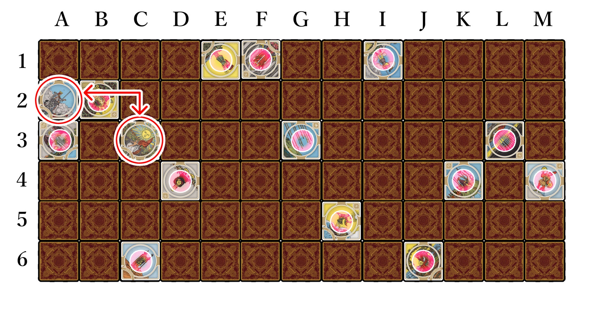 札を開き、札に記された道を繋ぎ、トークンが乗っている札を全て繋げる