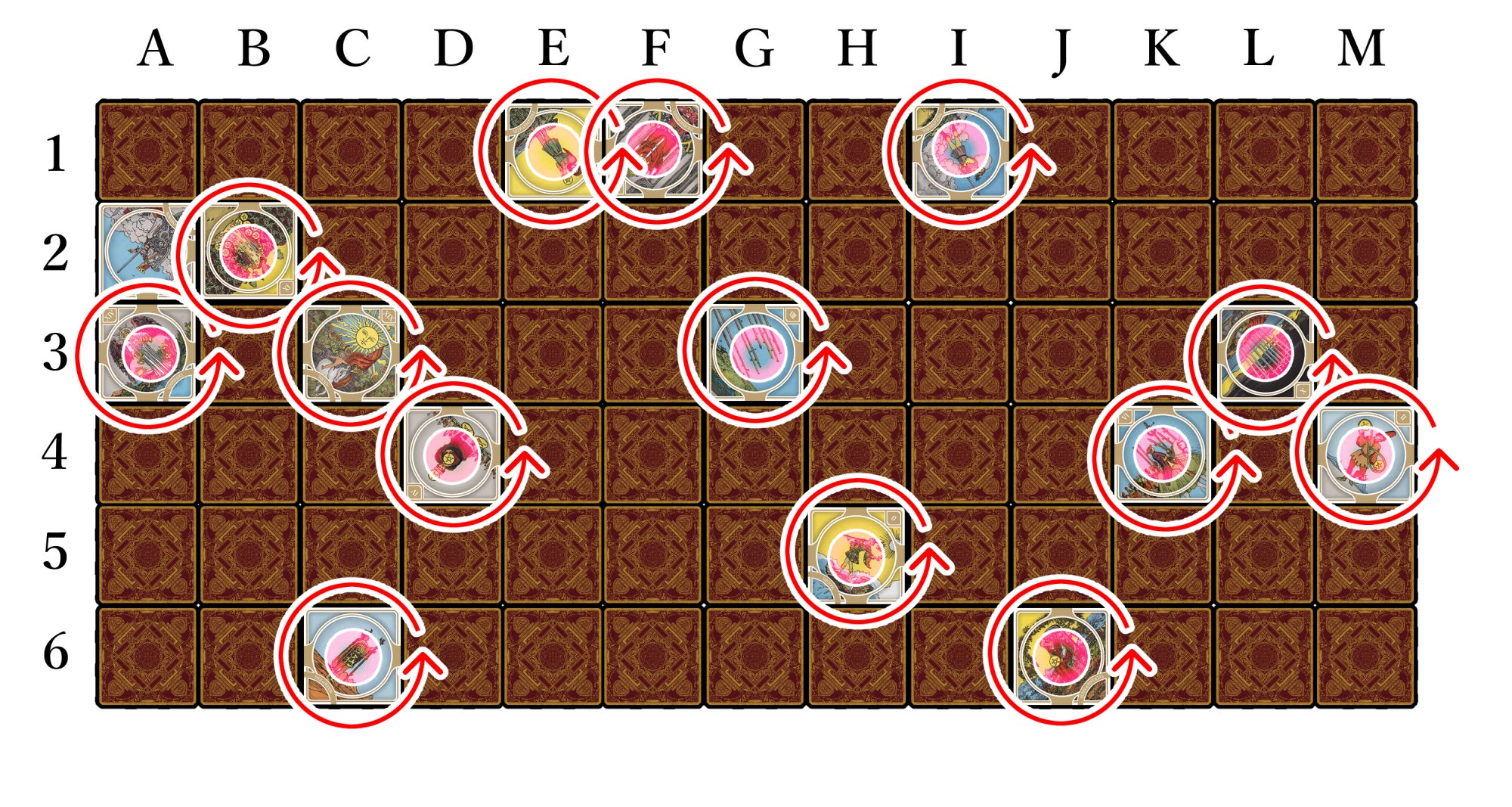 トークンが乗っている札はいつでも自由に向きを変えることができる。