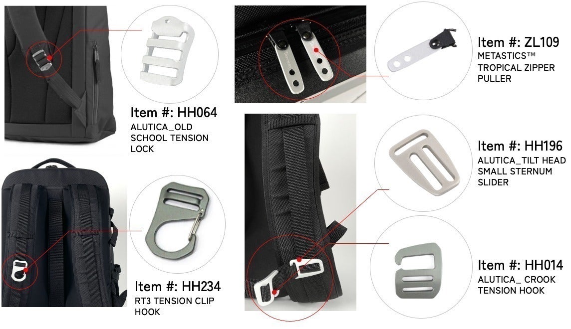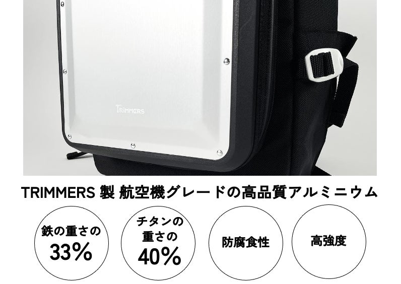 「MetAstics™ DAYPACK」は、そのA6061 アルミ合金をすべてのパーツに使用。耐久性と強度に優れるTRIMEERS社の定番デザインのパーツたちです。