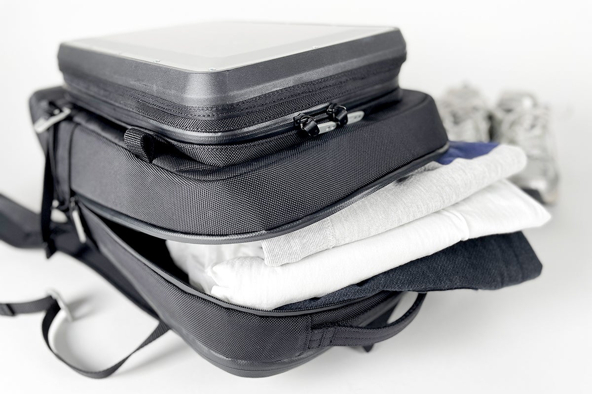 たくさんの荷物がコンパクトにまとめられるので、2泊3日程度の国内出張は余裕。一般的な航空会社の機内持ち込み可能サイズもクリアしているので、長期出張の場合もスマートに同行できます。