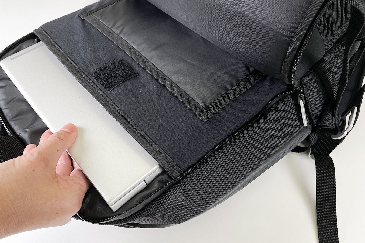 背面のコンパートメントは、各種ラップトップ、タブレット、ノートなどを収納しておくのに最適。