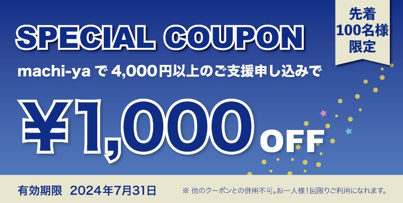 2024/07/11 12:30【先着100名様限定!1,000円OFFクーポン配布中】machiyaで使える、先着100名様限定のクーポン配布中。MetAstics DAYPACKの支援を迷っていた方はおトクなこの機会にぜひ!■配布枚数:100枚(期間中1人1回まで使用可能)■クーポン利用期限:7月31日(火)23:59■クーポン金額:1,000円OFF(支援金額4,000円以上)■適用サービス:machi-yaのみ※複数クーポンの同時使用NG※上限枚数に達した場合はご利用いただけません。予めご了承くださいませ。【クーポン取得方法】CAMPFIREアカウントにログインした状態で上記のバナー、またはこちらのリンクをクリックでクーポンが取得可能。※ 未ログイン状態の場合はログイン画面に移動します。【クーポン使い方】>> クーポンご利用方法の詳細はこちら もっと見る
