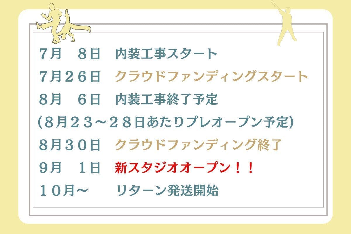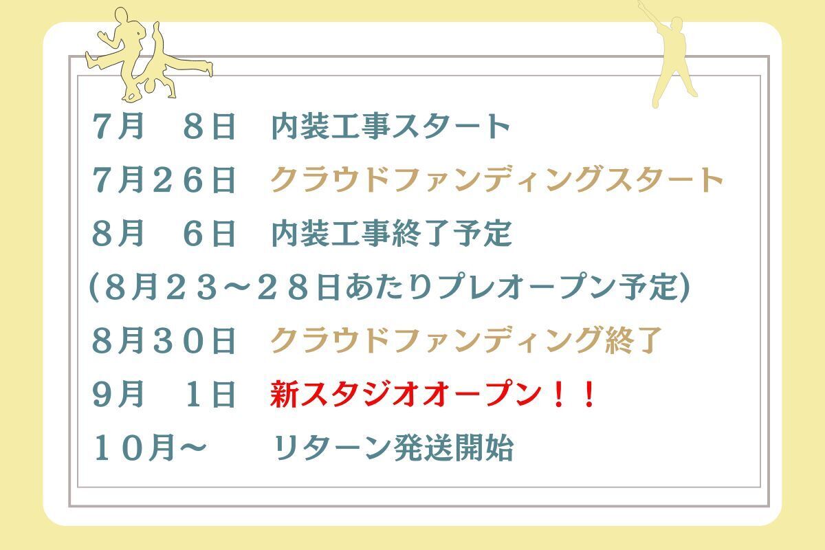 ご支援していただいた応援金は、新スタジオの改装費用の一部として、そして現在のスタジオの存続の為の運転資金として大切に使わせていただきます。