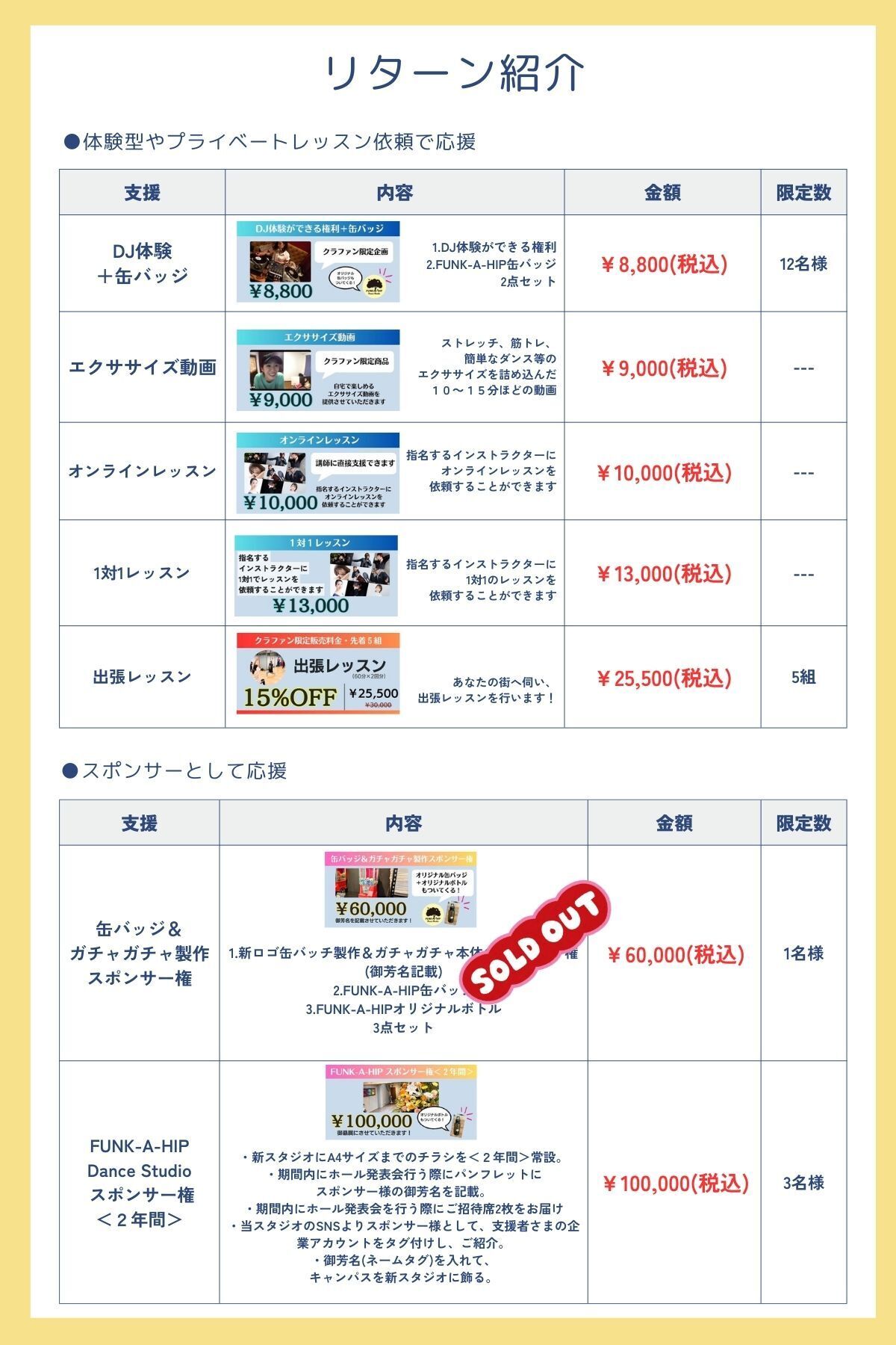 ※詳細は各リターンの申込ページでご確認くださいませ。