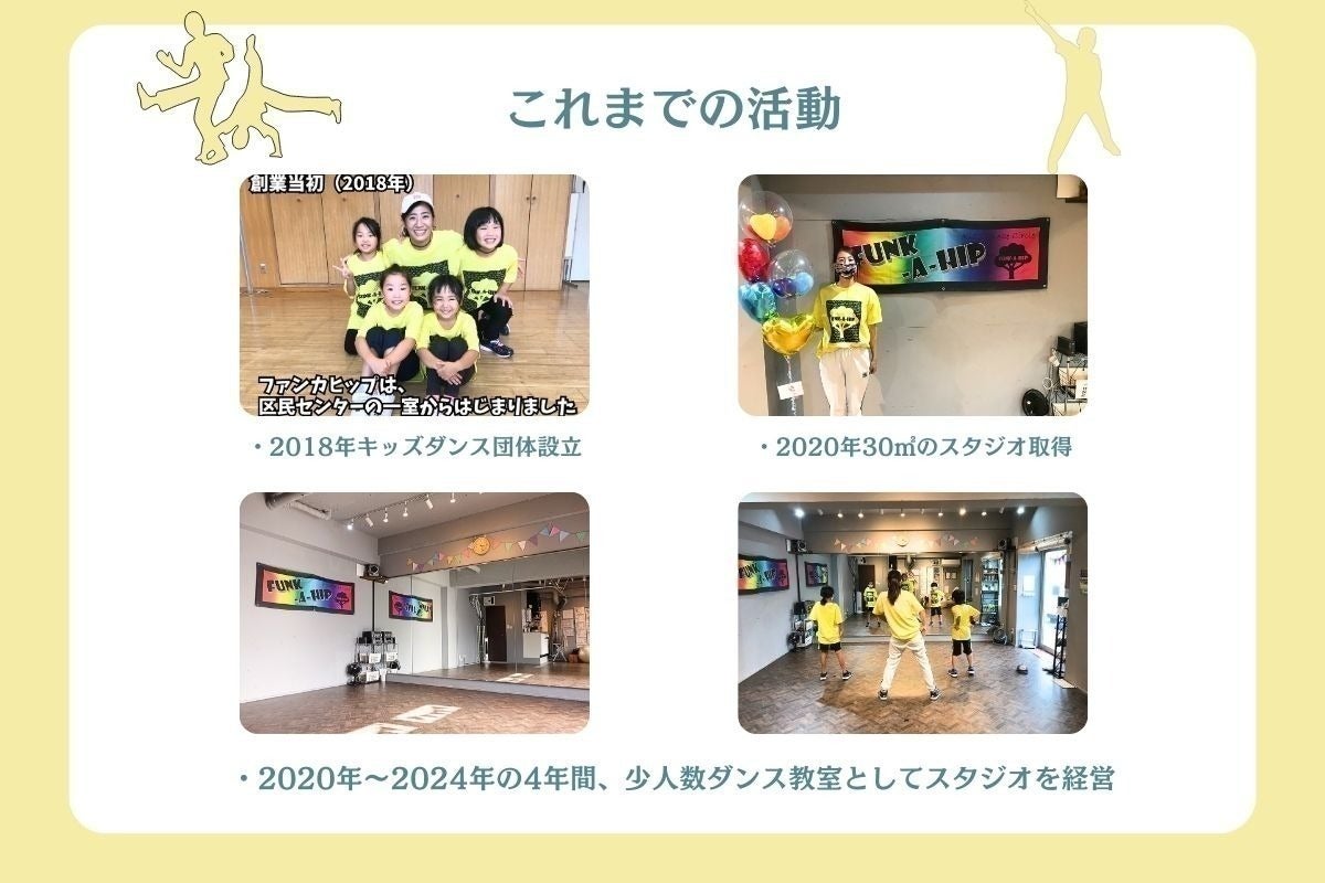 当初は現在の物件を解約して“ダンススタジオ移転”の予定だったのですが、“完全移転”となってしまった場合に「新しいスタジオまでの送迎が難しいので退会せざるを得ないかもしれない…」というお声をお聞きし、そのような理由でダンスを諦めてほしくない!!という想いが、今回クラウドファンディングに挑戦をする、大きなきっかけとなりました。