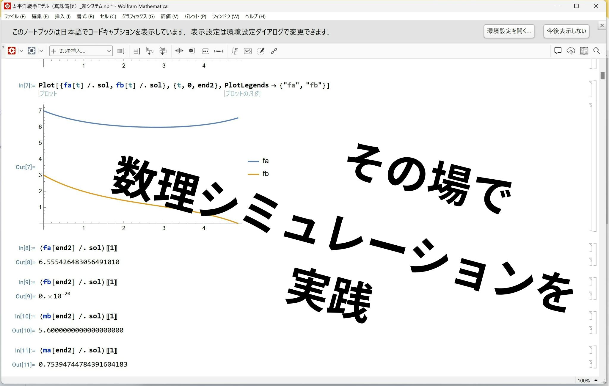 こちらのノートブックファイルがあれば(他にMathematicaのライセンスが必要ですが)、菊地の研究の検証や、パラメータを変えて自分自身のオリジナルのシミュレーションをすることも可能になります!