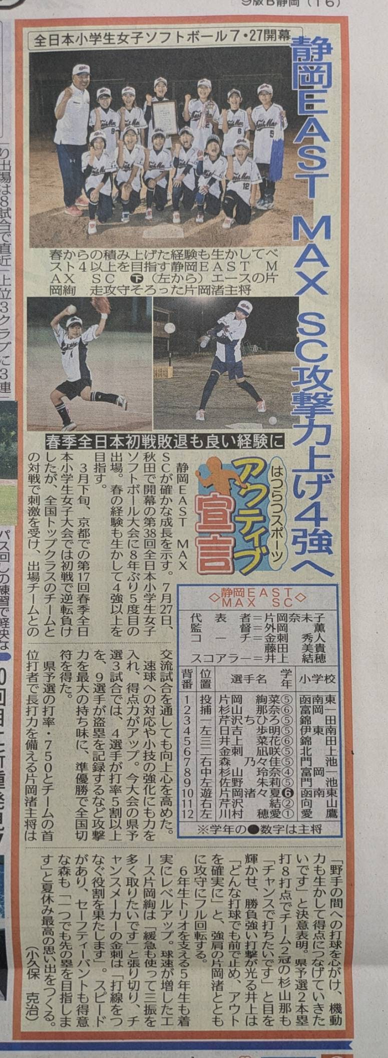 本日(6月28日)、スポーツ日本にEASTMAXSCの記事が掲載されました。