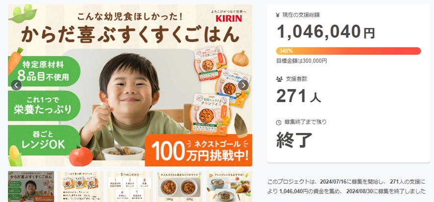 この度は多くの方に「からだ喜ぶすくすくごはん」をご支援いただき、ありがとうございました。クラウドファンディングにてご支援をいただいた皆様から、「子どもがおいしいと完食した!」「ぜひストックとして買っておきたい」と一般販売を望む声を多くいただきました。それを受けまして、この度、期間限定でAmazonにて販売することとしました!■販売商品(下記の2種類を販売いたします。)1.120g3種(とり五目ごはん、カレーごはん、チキンライス)各2個入り(計6個)価格:3,400円(消費税込、送料込)2.160g3種(とり五目ごはん、カレーごはん、チキンライス)各2個入り(計6個)価格:3,800円(消費税込、送料込)■販売ページはこちらからもアクセスいただけます↓↓↓↓↓↓↓↓↓https://amzn.asia/d/8NshLwD■販売期間160g 3種 各2個(計6個)2025年1月14日まで120g 3種 各2個(計6個)2025年1月31日まで※販売状況により、早期に販売終了となる可能性があります。次回の販売は未定となっております。この機会に是非お買い求めください。今後とも「からだ喜ぶすくすくごはん」をどうぞよろしくお願いいたします。