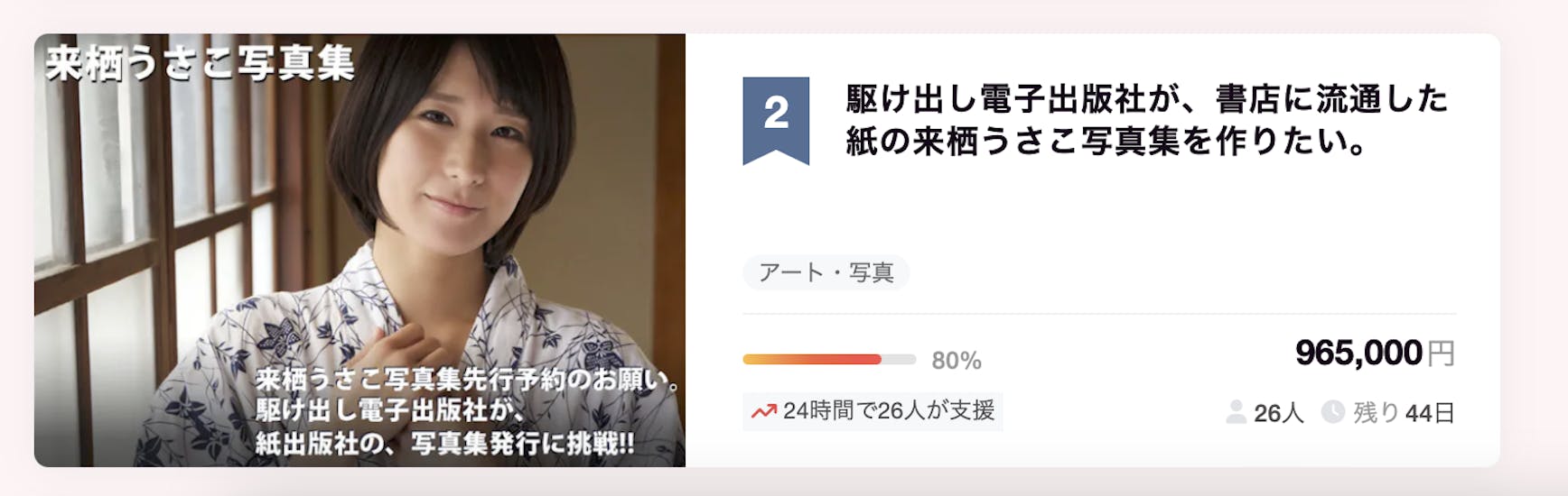 「駆け出し電子出版社が、書店に流通した紙の来栖うさこ写真集を作りたい。」プロジェクトオーナーのVIVID CASTです。