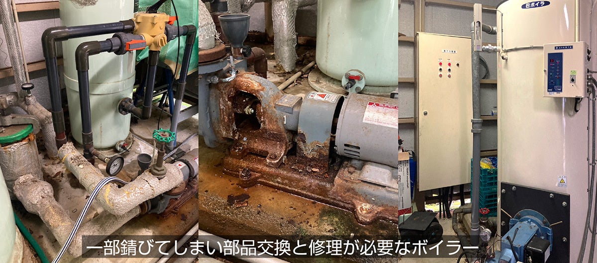 女湯のボイラーが故障していて、温度調節ができません。そのため、熱いお湯を湯船にはって、水で温度を下げて適温にしていますが、人的に適温にするため、1日に何回もお風呂の温度管理をしています。このボイラーを修理して、適温でお客様に快適にお風呂に入ってもらいたいと思います。