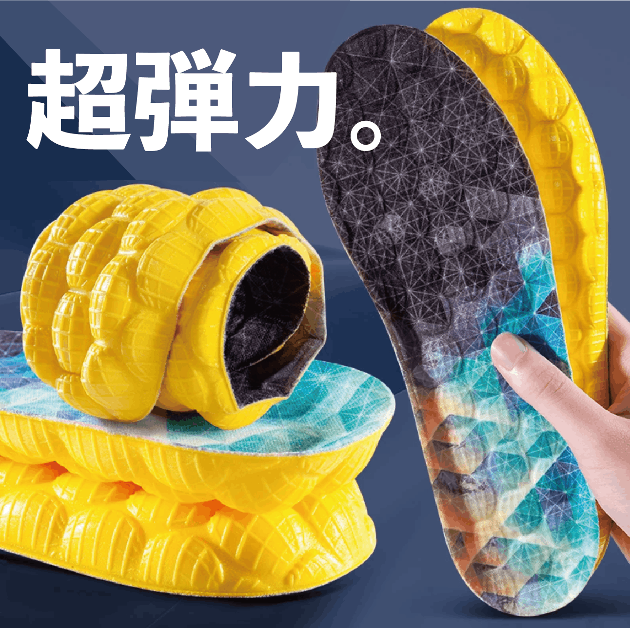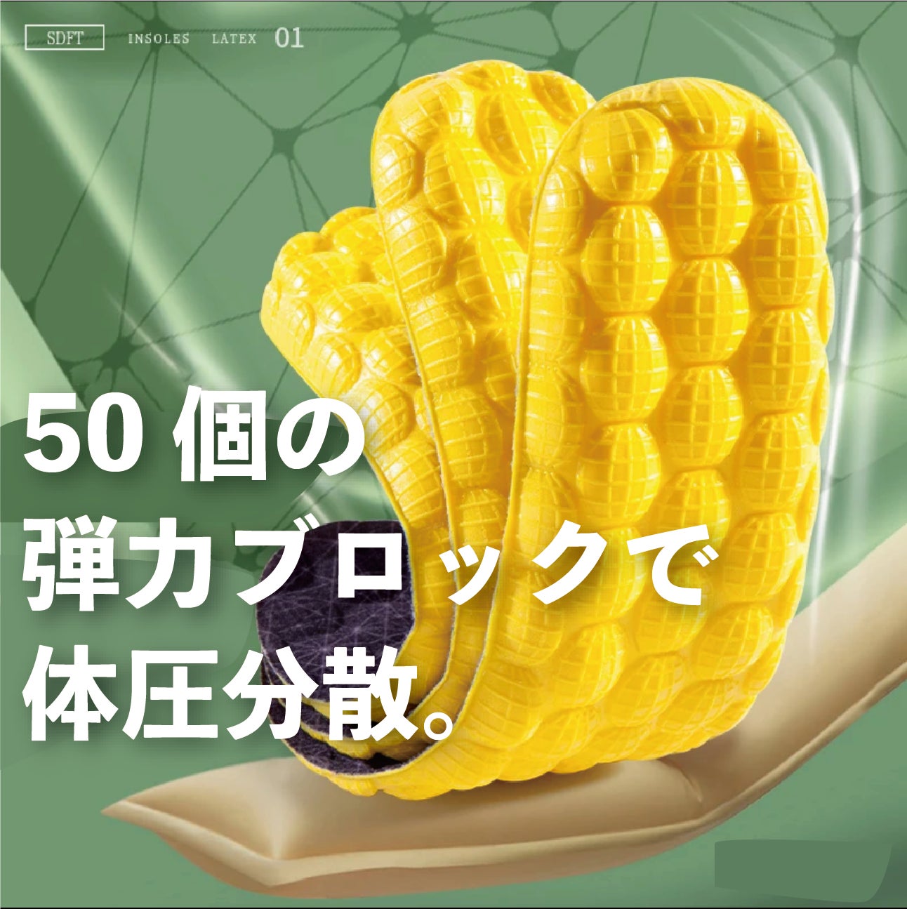 足裏全体に均等にブロックを配置し、あらゆる角度からの圧力を分散させることに成功しました。これにより、高負荷の荷重にも難なく耐えることができます。