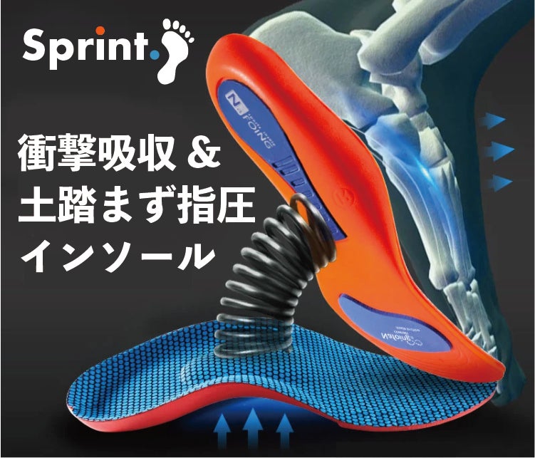 どんな足にもしっかりフィットSprintの特徴は、衝撃吸収に優れた”高機能超弾力クッション”
