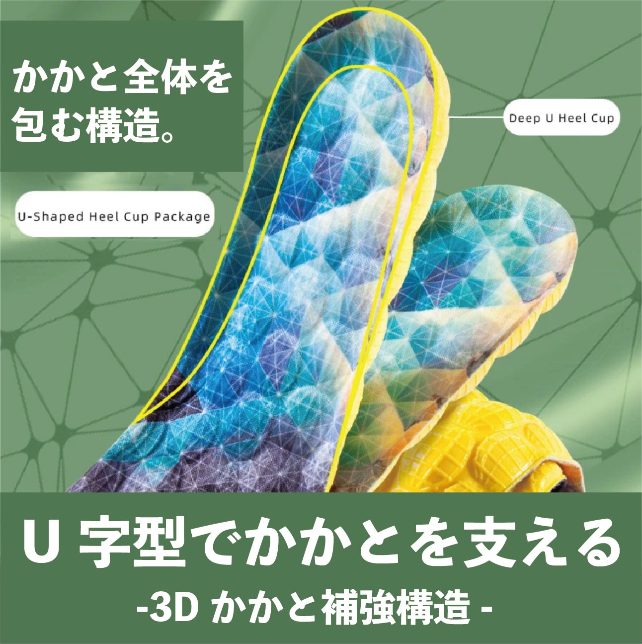 ③U字構造でかかとを包み、足裏のバランスをサポート!