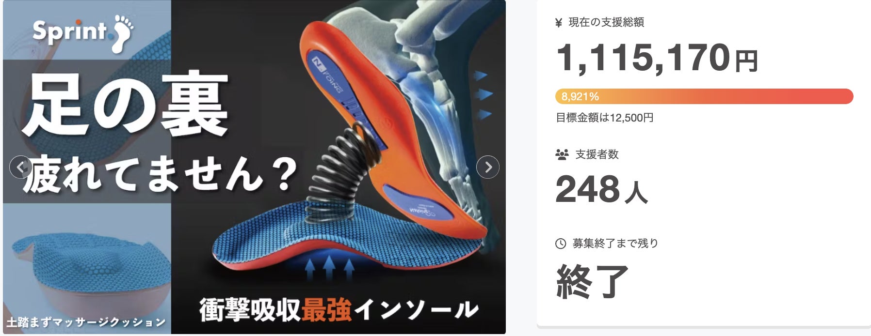 Sprintマッサージインソール(販売価格4,280円)をプレゼント!