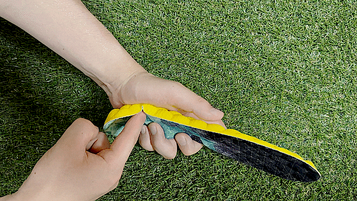 人体工学に基づいて裁断をし、足裏全体をふわりと包むインソールに仕上げました。